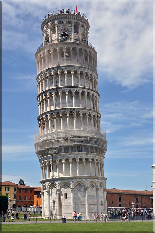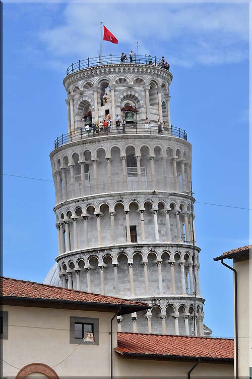 Krzywa wieża góruje nad dachami Pizy. ZOOM