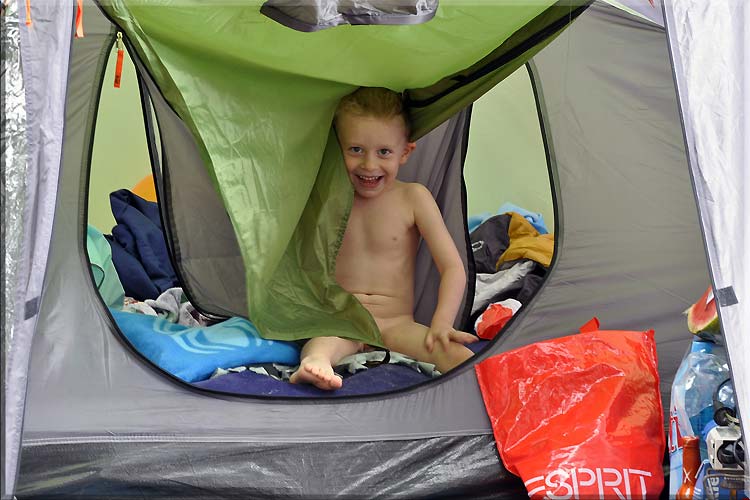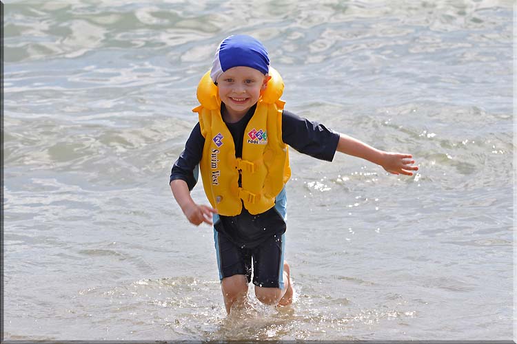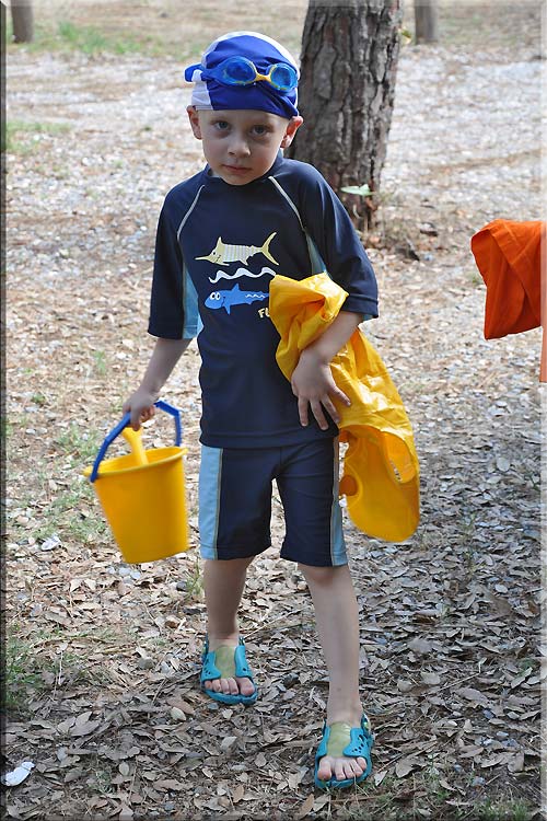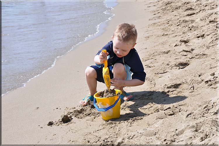 Jasiu się bawi w piasku.